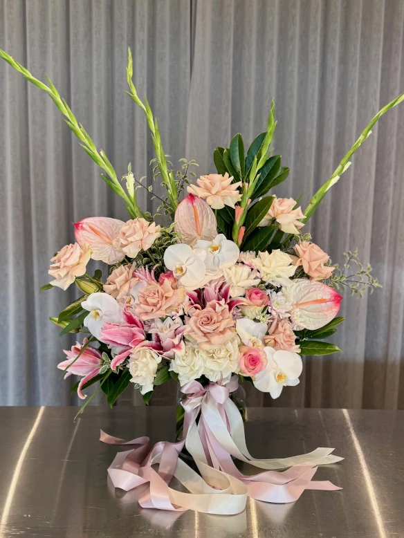 Pictured example is size “Extravagant” presented as a vase arrangement.